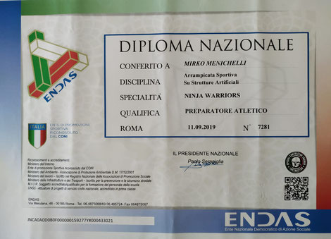 Abbiamo cosi conseguito il primo diploma in italia nella specialità Ninja Warrios